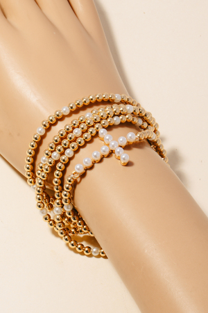 Chunk Marble Resin And Metallic Beads Bracelet Set