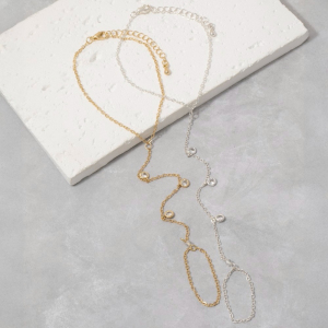 Cz Bezel Hand Chain Bracelet Ring