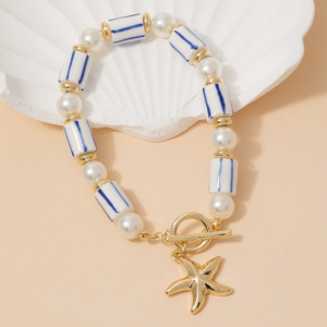 Pearl And Ceramic Beads Starfish Toggle Chain Bracelet