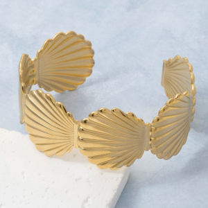 Scallop Sea Shell Wide Cuff Bracelet
