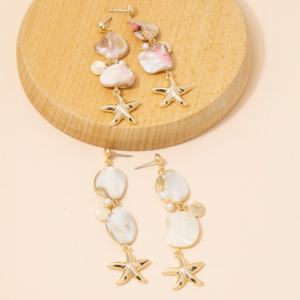 Pearl And Starfish Charm Drop Earrings