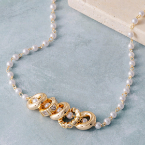 Pearl Chain Ring Cluster Charm Necklace