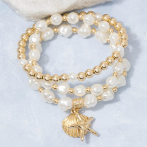 Star Fish And Sea Shell Charms Mixed Beaded Bracelet