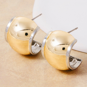 Two Tone Dome Shield Hoop Earrings