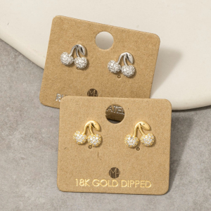 Gold Dipped Cz Pave Cherry Stud Earrings