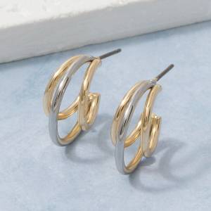 Secret Box Gold Dipped Oval Gem Hoop Earrings Set