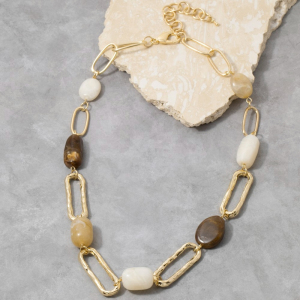 Hammered Link And Stone Station Necklace