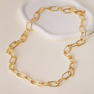 Long Textured Oval Link Chain Necklace