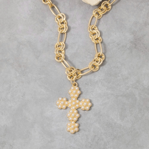 Pearl Cross Pendant Chain Necklace