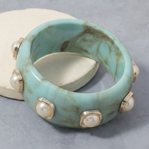 Turquoise Marble Resin Pearl Dome Studded Bangle Bracelet