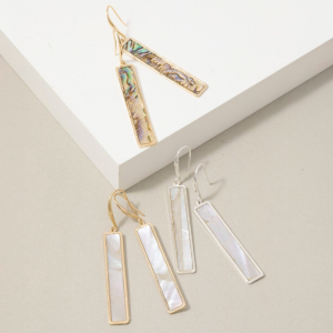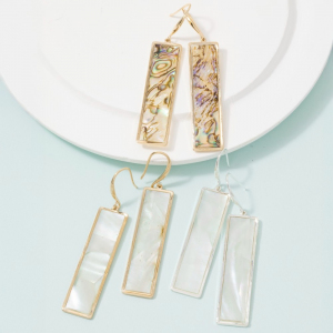 Gold Frame Rectangle Shell Drop Earrings