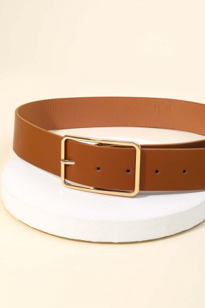 Rectangle Cutout Buckle Vegan Leather Belt