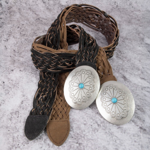 Western Braided Concho Buckle Vegan Leather Belt