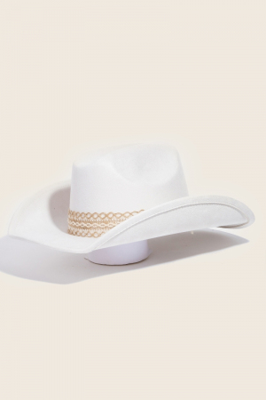 Boho Embroidered Strap Faux Suede Cowboy Hat
