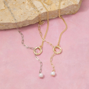 Pearl Drop Ring Lariat Y-Necklace