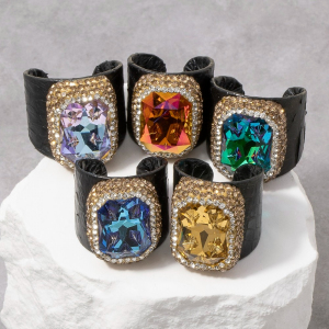 Pave Faceted Crystal Stone Leather Band Statement Ring
