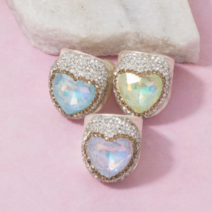 Faceted Crystal Heart Pave Statement Ring