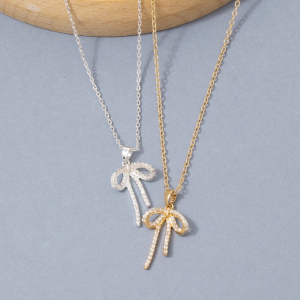 14K Gold Dipped Cz Bow Pendant Necklace