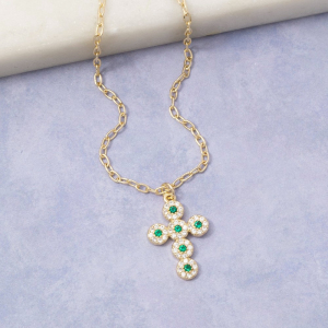 14K Gold Dipped Cz Emerald Cross Necklace