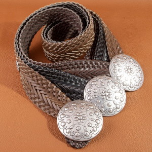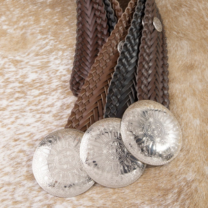 Braided Vegan Leather Round Concho Belt