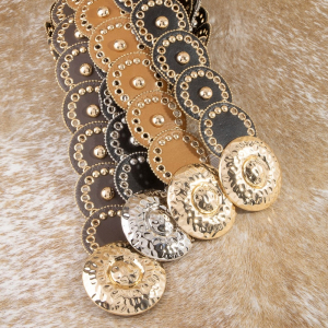 Gold Studded Circle Concho Wide Vegan Leather Belt