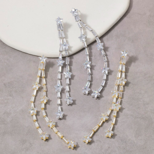Star And Baguette Gems Chain Dangle Earrings