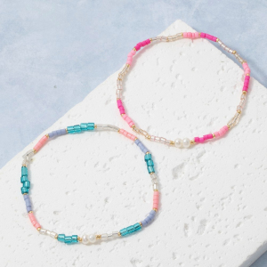 Multicolor Tube Bead & Pearl Stretch Bracelet