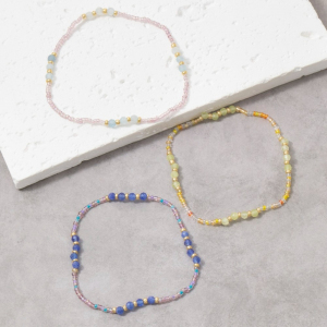 Tube & Gold Ball Beaded Stretch Bracelet Set