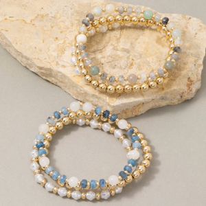 Stone, Pearl & Gold Ball Beaded Stretch Bracelet Set