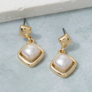 Square Pearl In Diamond Frame Drop Earrings