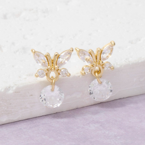 Cz Marquise Butterfly Round Cz Drop Earrings