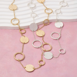 Long Hammered Disc & Open Circle Station Necklace