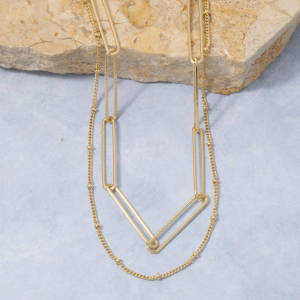 Layered Paperclip & Satellite Ball Chain Necklace