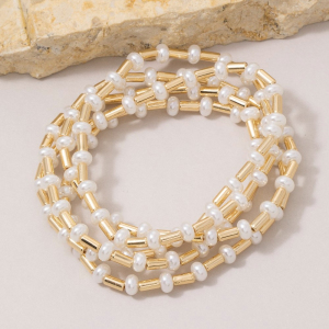 Pearl & Gold Tube Beaded Stretch Bracelet Set