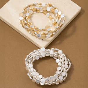 Two-Tone Hammered Flat Disc Stretch Bracelet Set