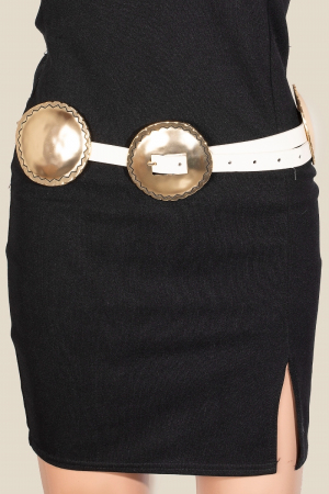 Metallic Disc Studded Faux Leather Belt