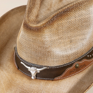 Western Long Horn Strap Trim Straw Cowboy Hat