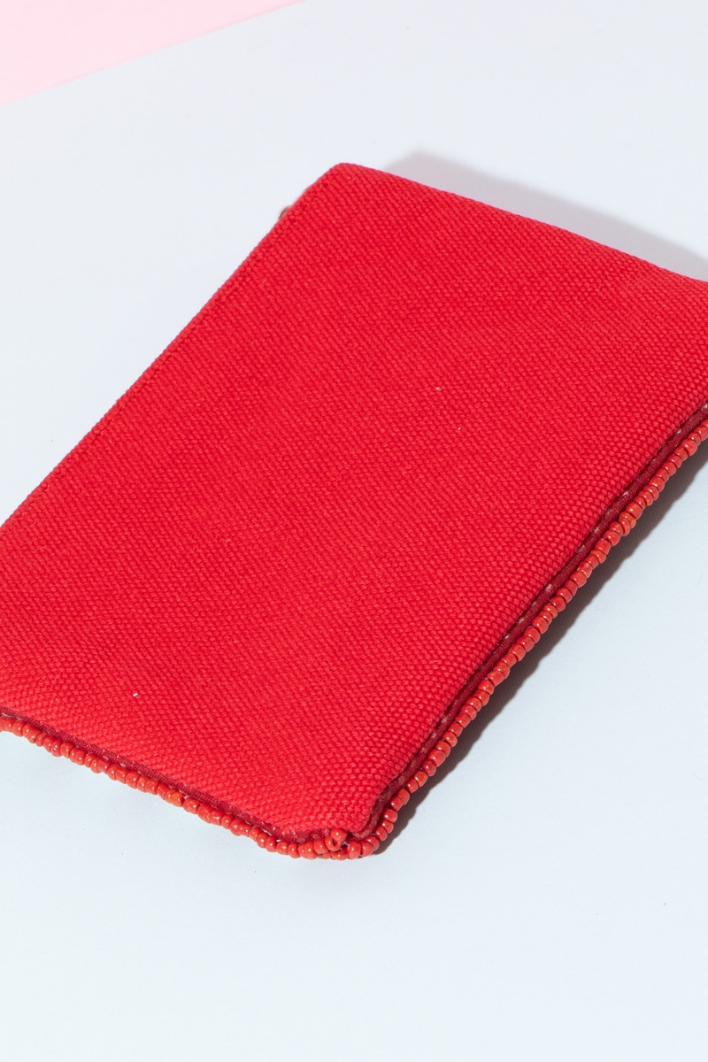Pink Love Print Beaded Coin Purse