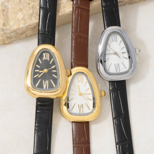 Oval Dome Case Croc Embossed Leather Strap Watch