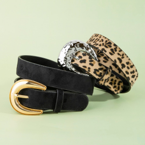Black And Leopard Vegan Leather Belt Set