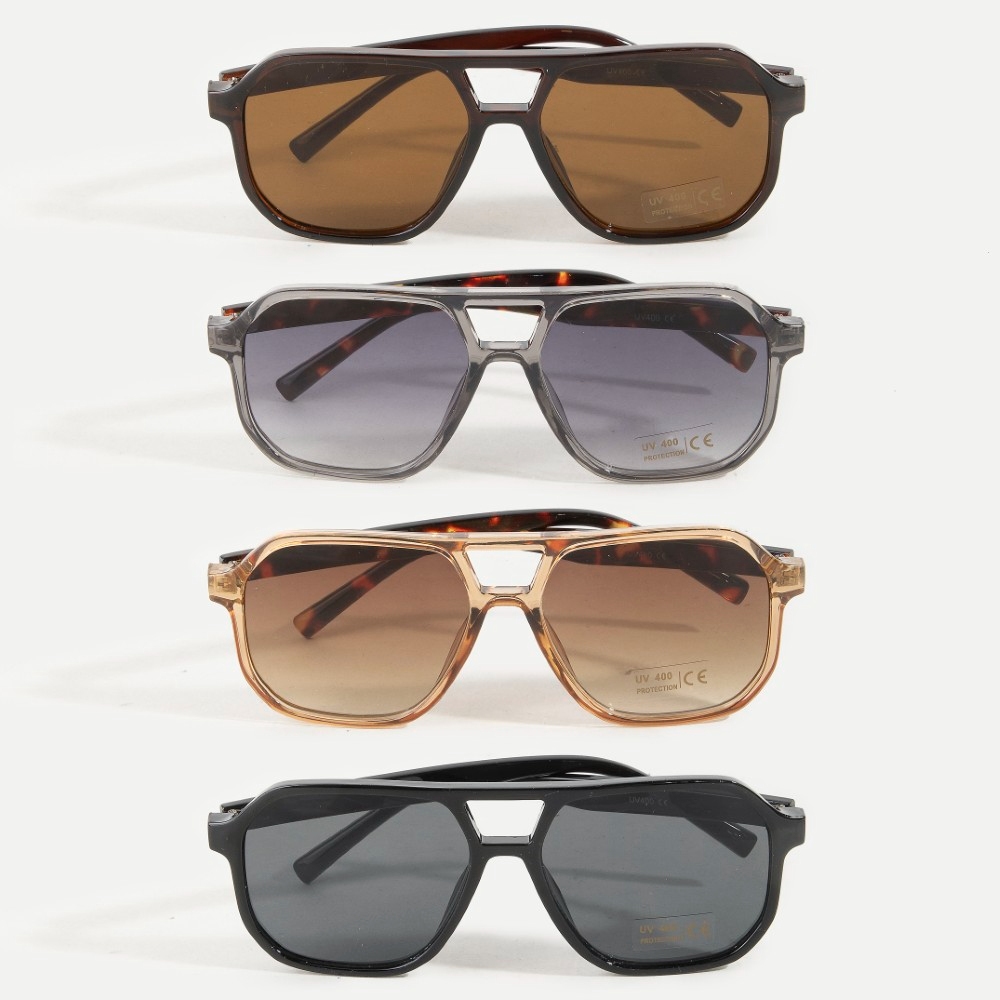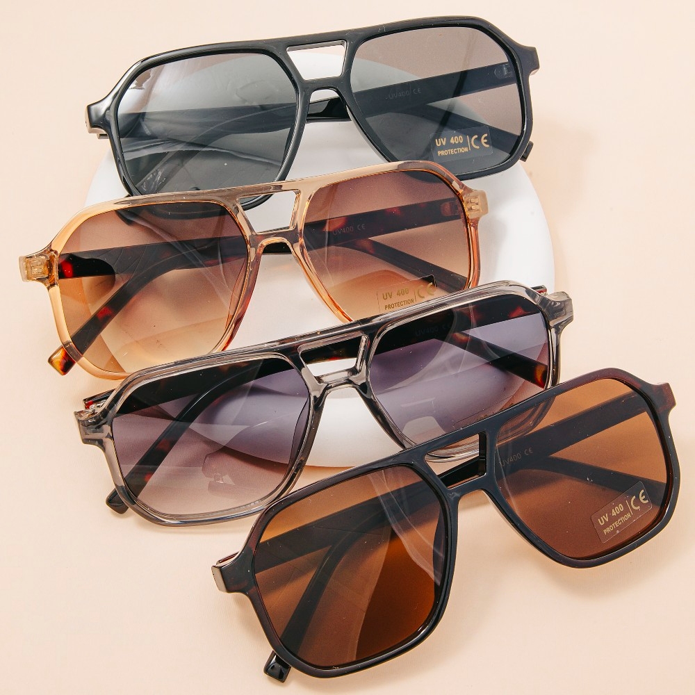 Double Bridge Aviator Polycarbonate Sunglasses Set