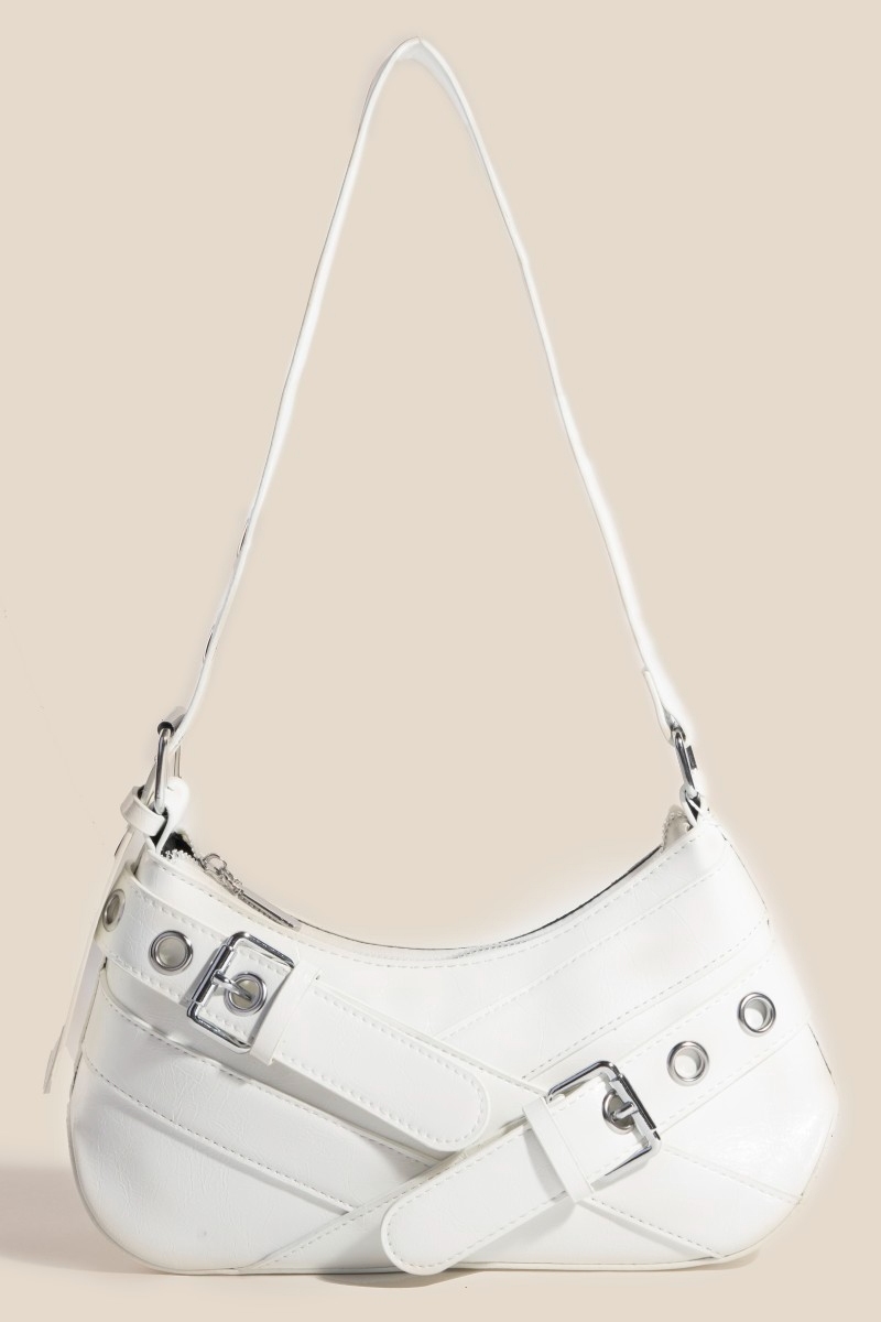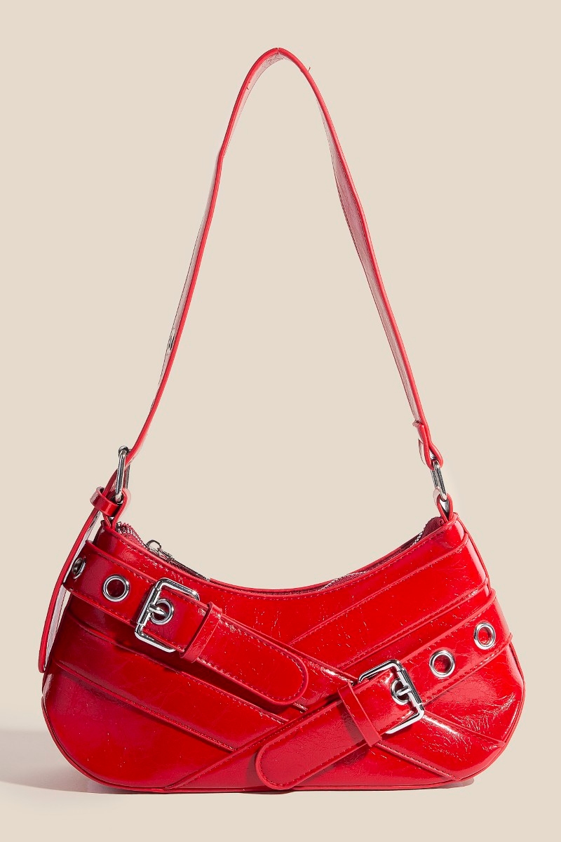 • This piece is a true showstopper, this shoulder bag incorporates a remarkable abstract overlap belt accent design. Discover the magic of accessorizing with this versatile shoulder bag, effortlessly upgrading the style quotient of any outfit. Available in BK, DN, RD, WH. This item is sold in packs of 1.