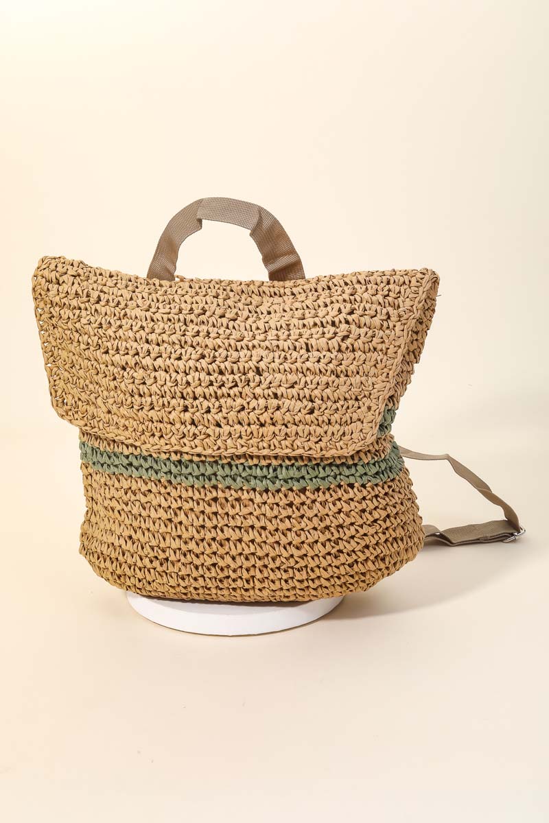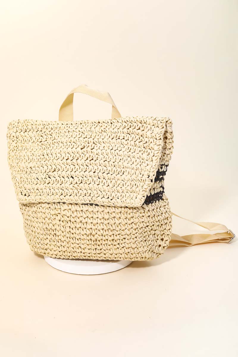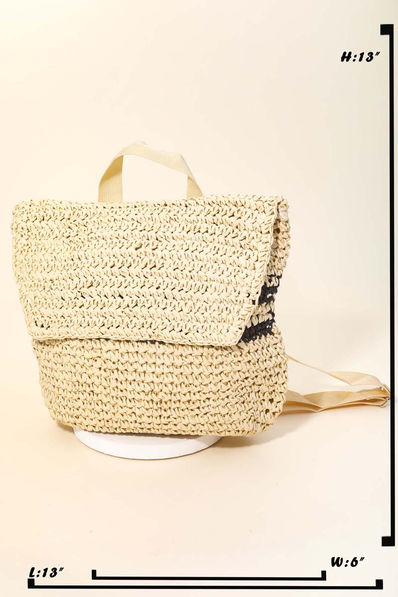 • This new popular trending accessory made into a beautiful straw braided fashion backpack design. Perfect for any occasion you have planned! Available in BK, TA and IV.
