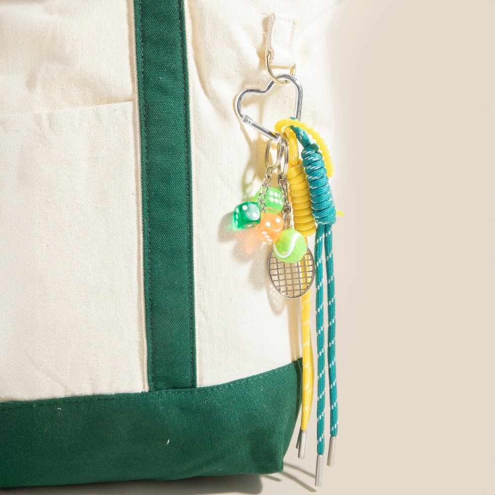 This season's must-have bag charm, this bag charm radiates a sleek gameday tennis and dice theme s design. Unlock endless styling possibilities with this versatile bag charm, creating a signature look that speaks volumes. This item is sold in packs of 1.