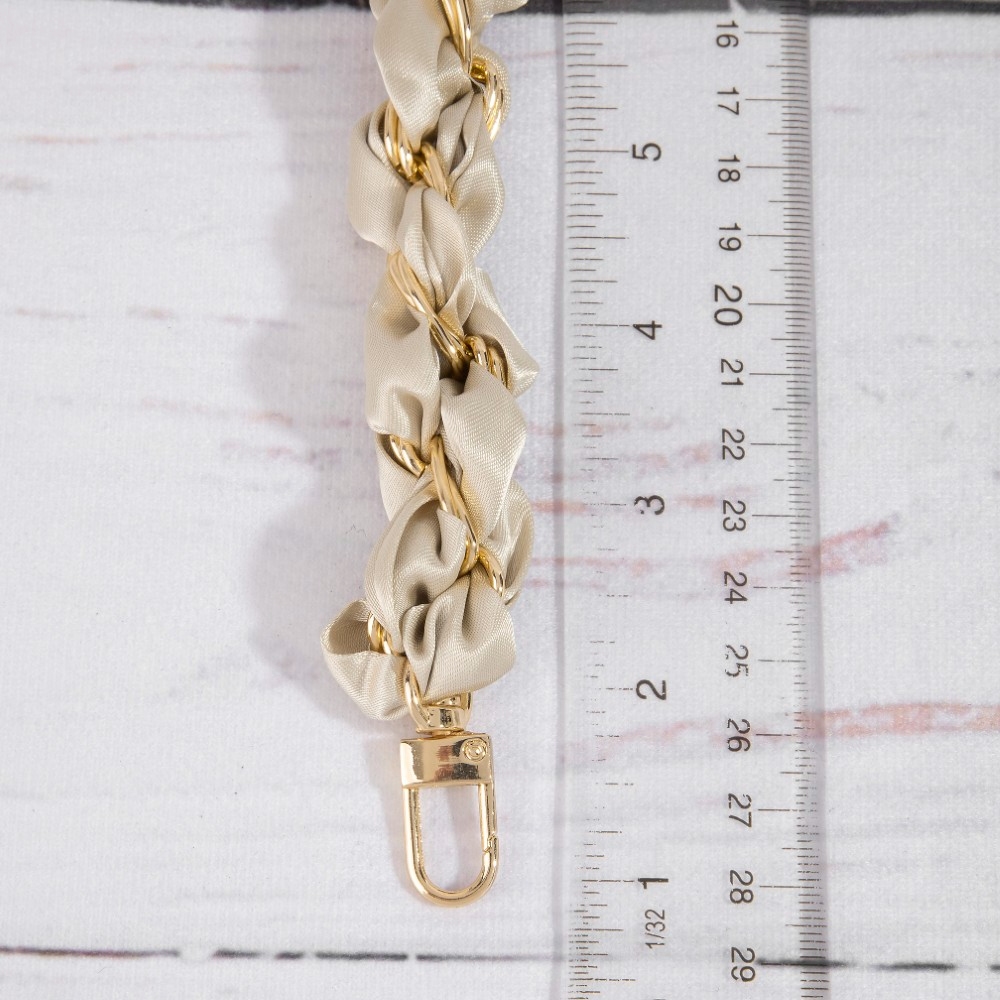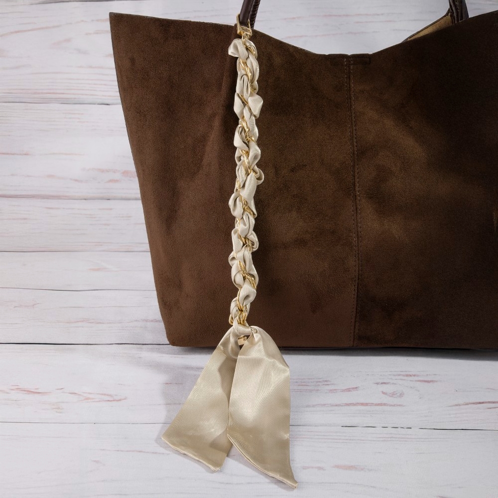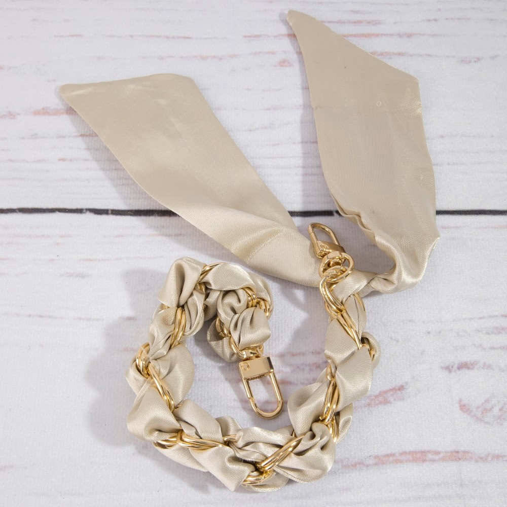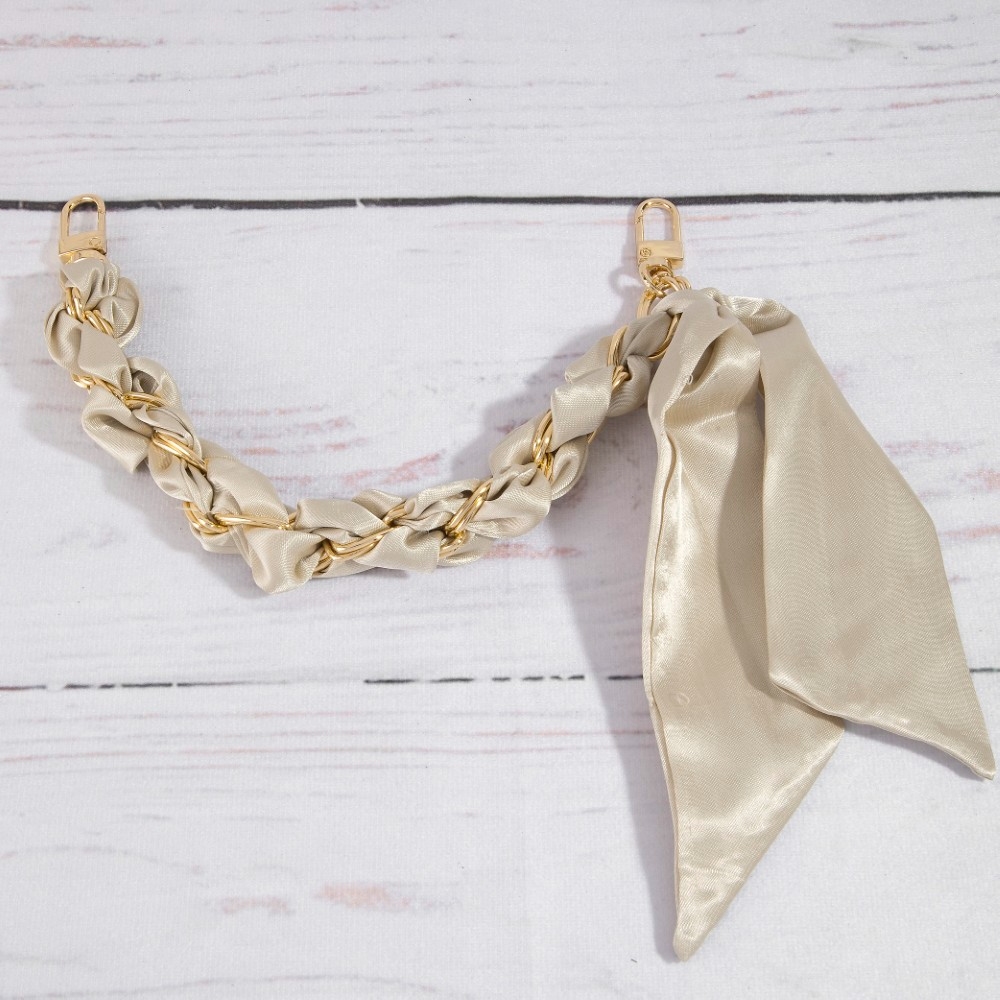 - Perfectly polished and endlessly versatile, this keychain boasts a magnificent satin scarf chain bag charm design. Elevate your fashion statement with this versatile keychain, adding a touch of glamour to your everyday look. Available in BGG2, BKG2, WHG2. This item is sold in packs of 1.