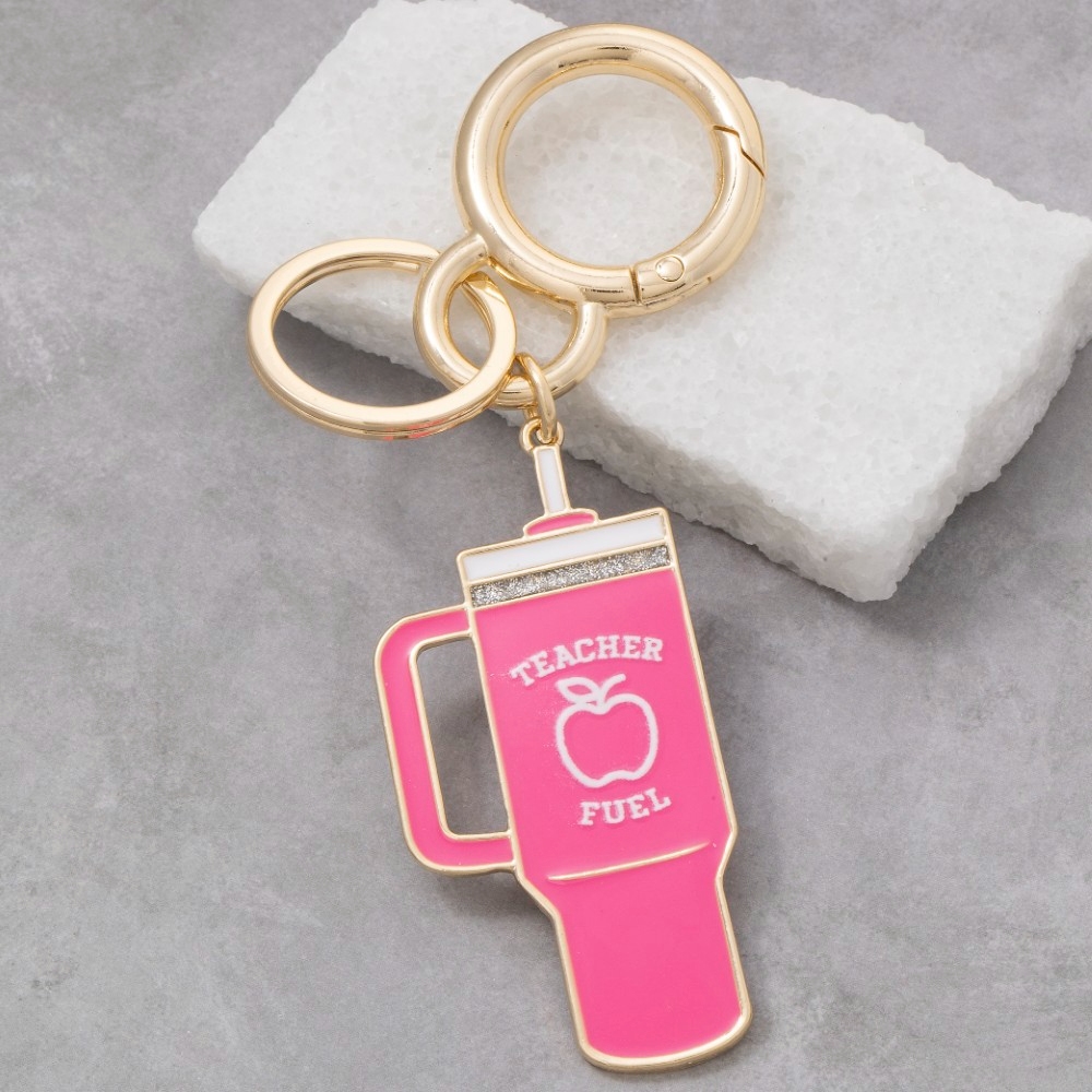 • This piece is the perfect way to add some glamour to your look, this keychain contains a special teacher fuel tumbler design. Add some personality to your outfit with this stylish keychain. Available in HPK. This item is sold in packs of 1.