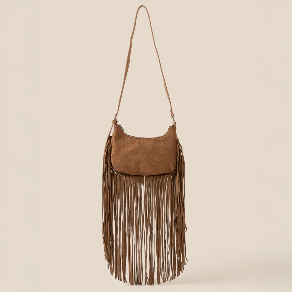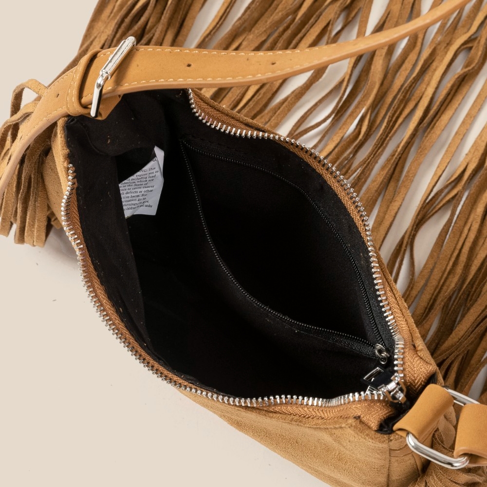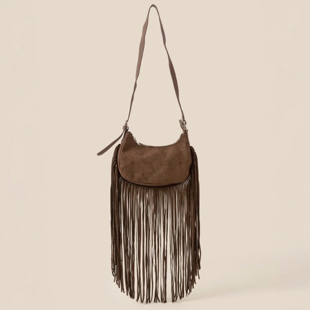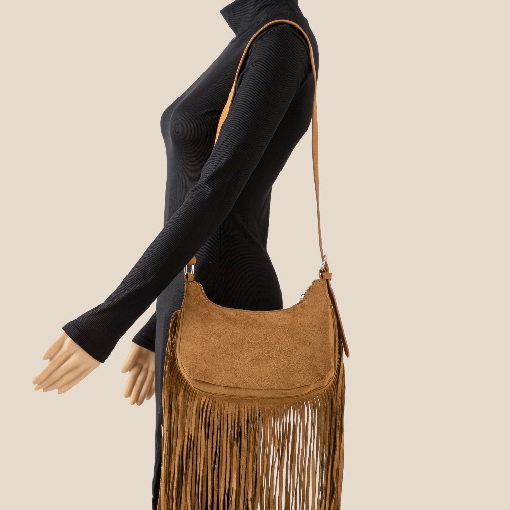 • A timeless piece that you'll wear for years to come, this crossbody bag embodies a sophisticated suede fringe design. Achieve a perfect balance of style and sophistication with this versatile crossbody bag, the ultimate choice for the fashion-savvy individual. Available in BK, CO, DBR, LBR. This item is sold in packs of 1.
