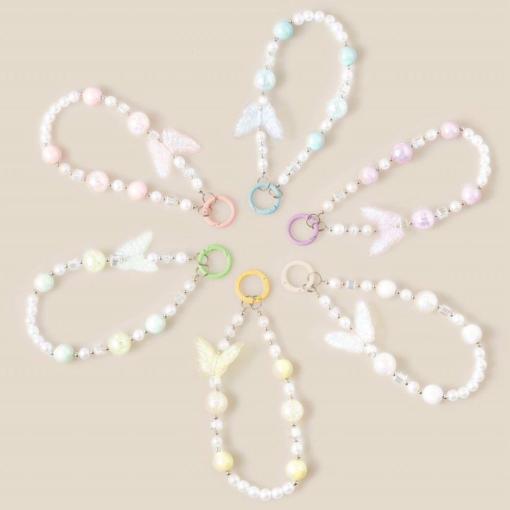 - A piece that will never go out of style, this bag charm showcases a breathtaking butterfly and pearl beaded design. Master the art of accessorizing with this versatile bag charm, a key element for achieving a chic and polished look. Available in IV, PK, PU, YE. This item is sold in packs of 1.