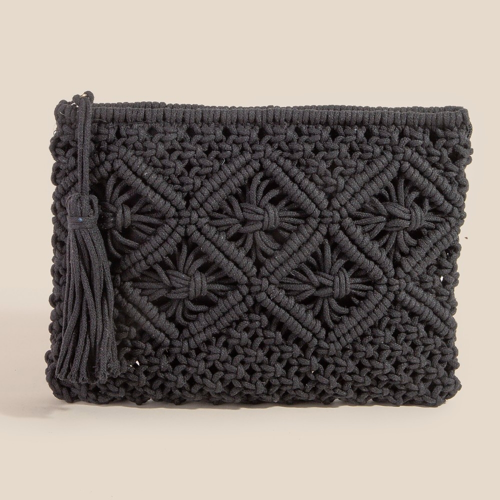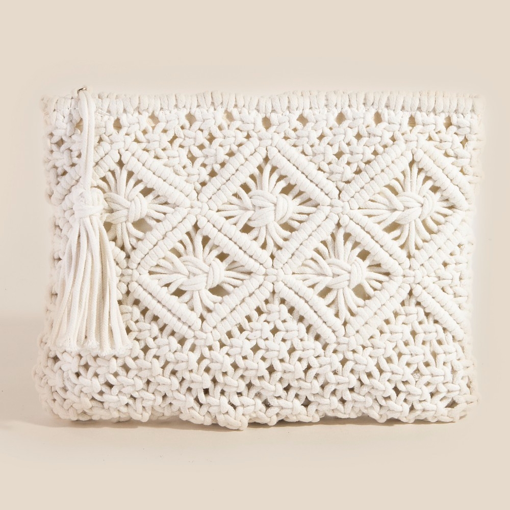 - A timeless piece that you'll wear for years to come, this clutch bag incorporates a flawless crochet clutch tassel bag design. Transform your outfit into a fashion masterpiece with this versatile clutch bag, an essential for the style-conscious individual. Available in BK, IV, KA, PK, RD and TA. This item is sold in packs of 1.