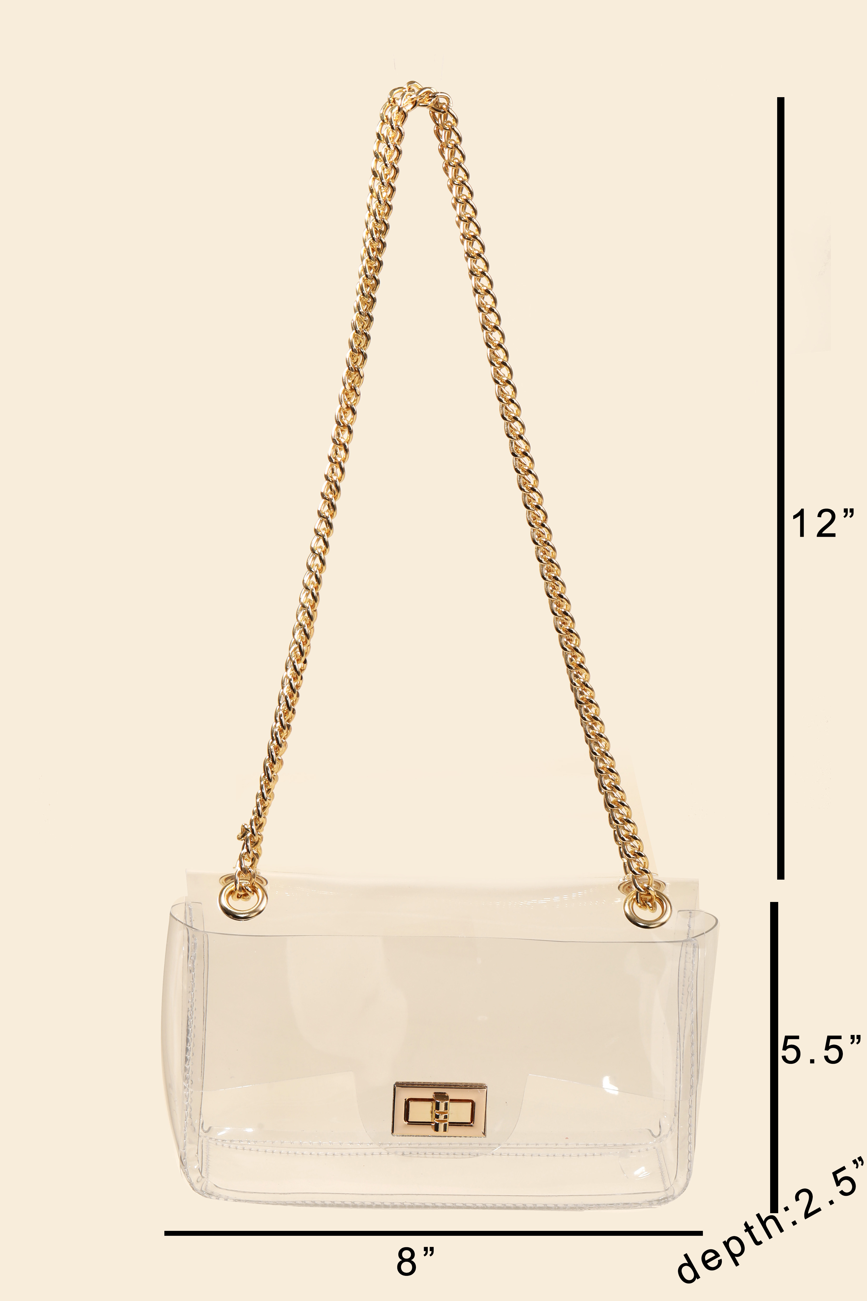 - A must-have for any fashion-forward individual, this clutch bag showcases a breathtaking turn lock chain strap design. It also includes comes with a pave studded clutch bag. This versatile accessory adds a touch of elegance to any outfit. Available in CLG. This item is sold in packs of 1.